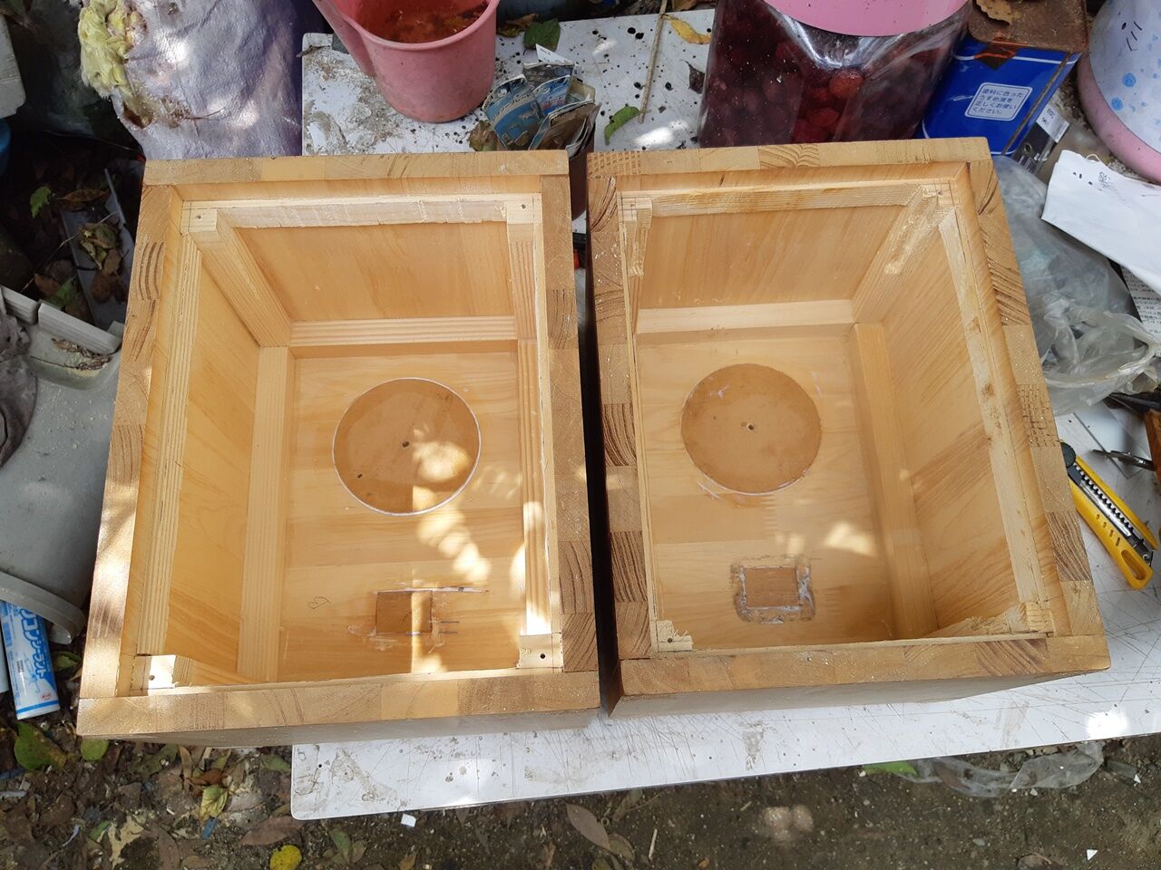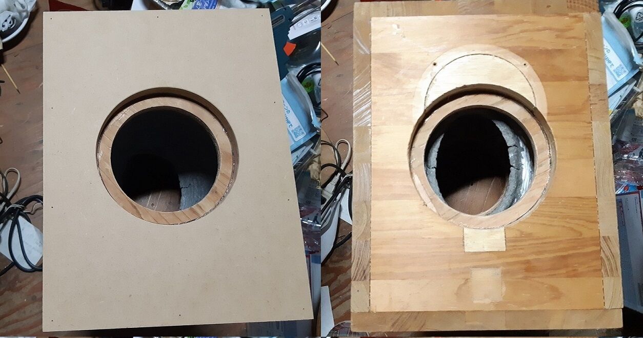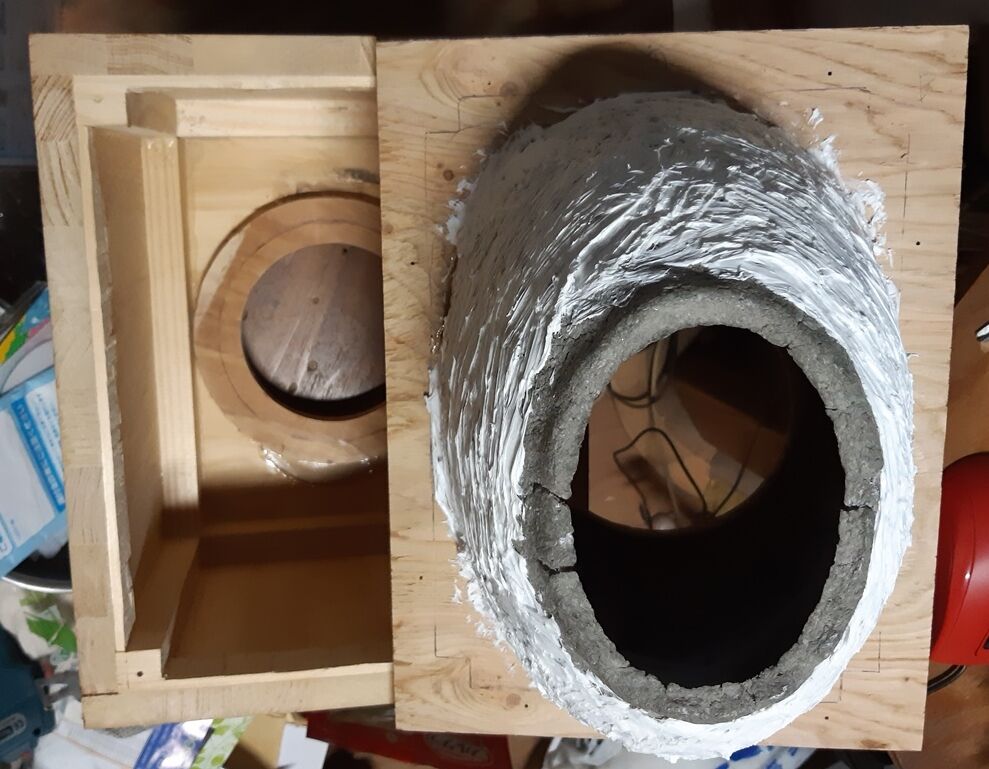 ・裏バッフル:第一段階として開口部分の穴埋めを行いました。後日、穴を開け直します。