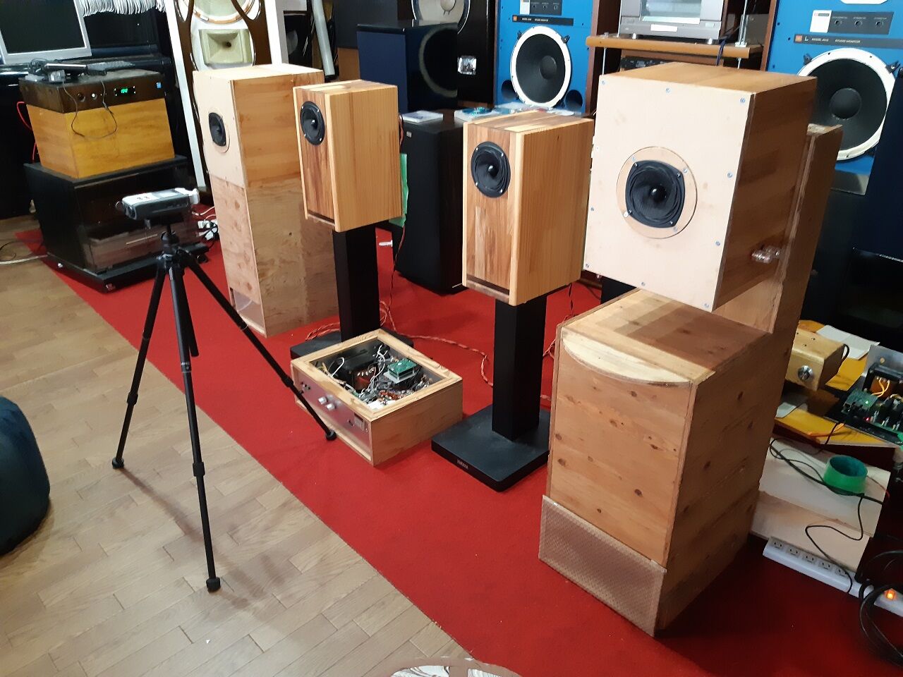 コンテストの規格に合わせて作り直したのですが、結構コンパクトにできています。そして、定在波対策として楕円中空体を内蔵させたのですが効果は覿面です。今回は、正12面体BOXの良さである定位やクリヤさを6面体BOXでの再現を目指したのですが、初期の目標はクリアできました。又、ソースが持つ残響の再生状況でも小型6面体BOXに比較して明らかに優れていました。(詳細は、KさんYouTubeを参照ください)更に、奥域感も正12面体BOX並みの音場感が有ります。