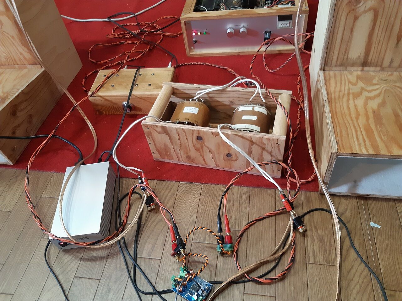 一応、 先週金曜日の夜には音出しが出来たので三田オーディオ研究会には持って行きました。しかし、ハム音が簡単には取れず、試行錯誤を繰り返すことになりました。結論から言うと、シールドされていないノイズフィルター(チョークコイル)が悪さをしていました。今は、取り敢えず付けていますが最終的には、撤去するかもしれません。