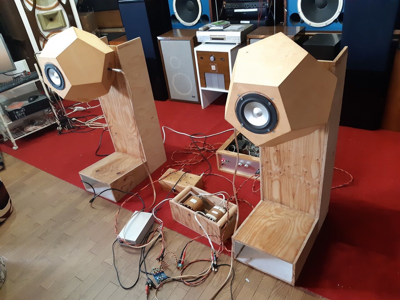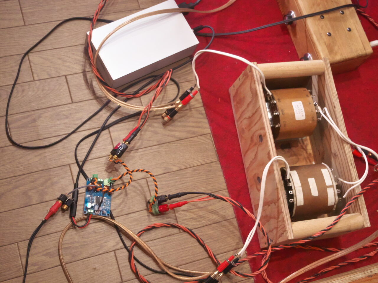 設計では、OPT(Tr製PA用アンプから流用)を内蔵する計画でしたが先日の三田オーディオ研究会でOPT無しでも十分鑑賞に耐ええたので、暫くはOPT無しで聞くことにします。