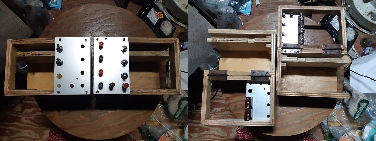 次回の三田オーディオ研究会(11/18)に向けて、簡単なネットワーク調整器を製作中です。今回の機能としては、コンデンサーの切り替えが出来れば良いので手持ち材料の寄せ集めで考えました。しかし、ただ作るのでは面白くないので今後の拡張性が期待できるような構造としました。調整器の大きさは、200×135×H135で素材は何時ものコンパネです。