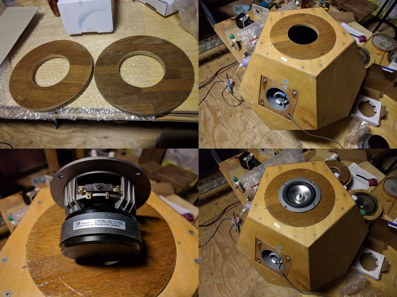 でバッフルに手を当ててみるとサブ・バッフルはそこそこ振動が有ってもメイン・バッフルは殆ど振動が有りません。これがサブ・バッフルの効果です。一枚板ではいくら強度を上げてもここまでの効果は期待できません。RD-85のバッフルも近々この方式に変更する予定です。
