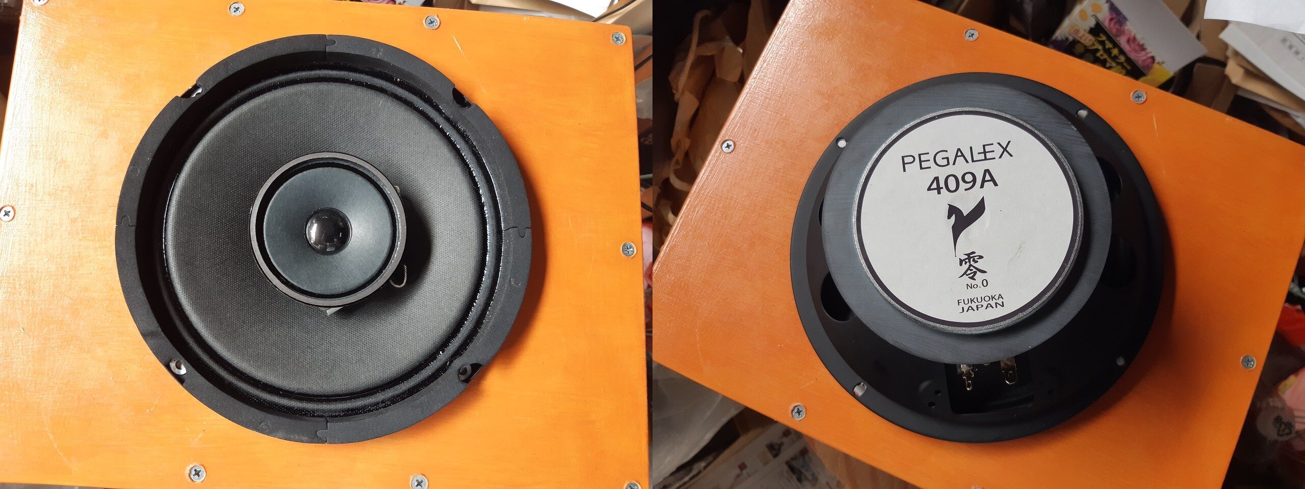 思った程の違和感は感じませんでした。オールイン・アンプ(ラズパイ+D級アンプ)のラズパイDACが故障したのでKさんにラズパイを持参して貰い、パワーアンプはP75D(TOA製PAアンプ、75W+75W)で試聴しました。良くも悪くも、PEGALEX 409A独特の音色を持つスピーカーに仕上がりました。