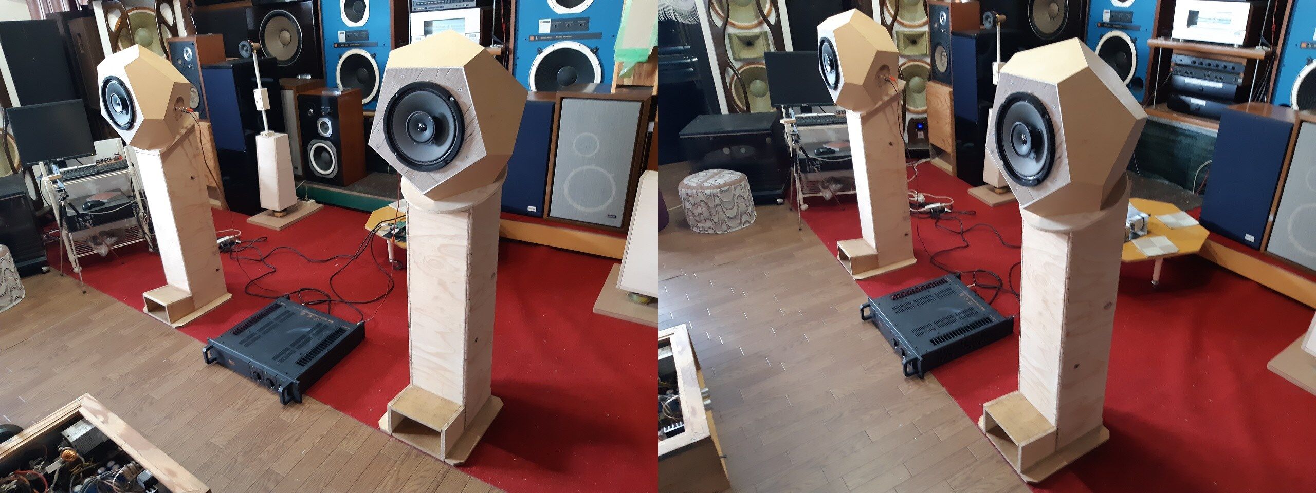 更にCSP6改と遊音工房製SPを並べて比較することにしました。そして、CSP6改のウーハーに遊音工房製SPのツィーターとの組み合わせで聞いて見ました。遊音工房製SPのツィーターの振動板は漆コーティングがされているのでその効果を確認したかった訳です。