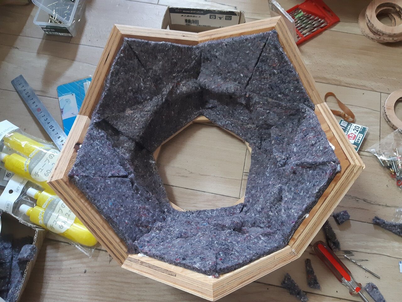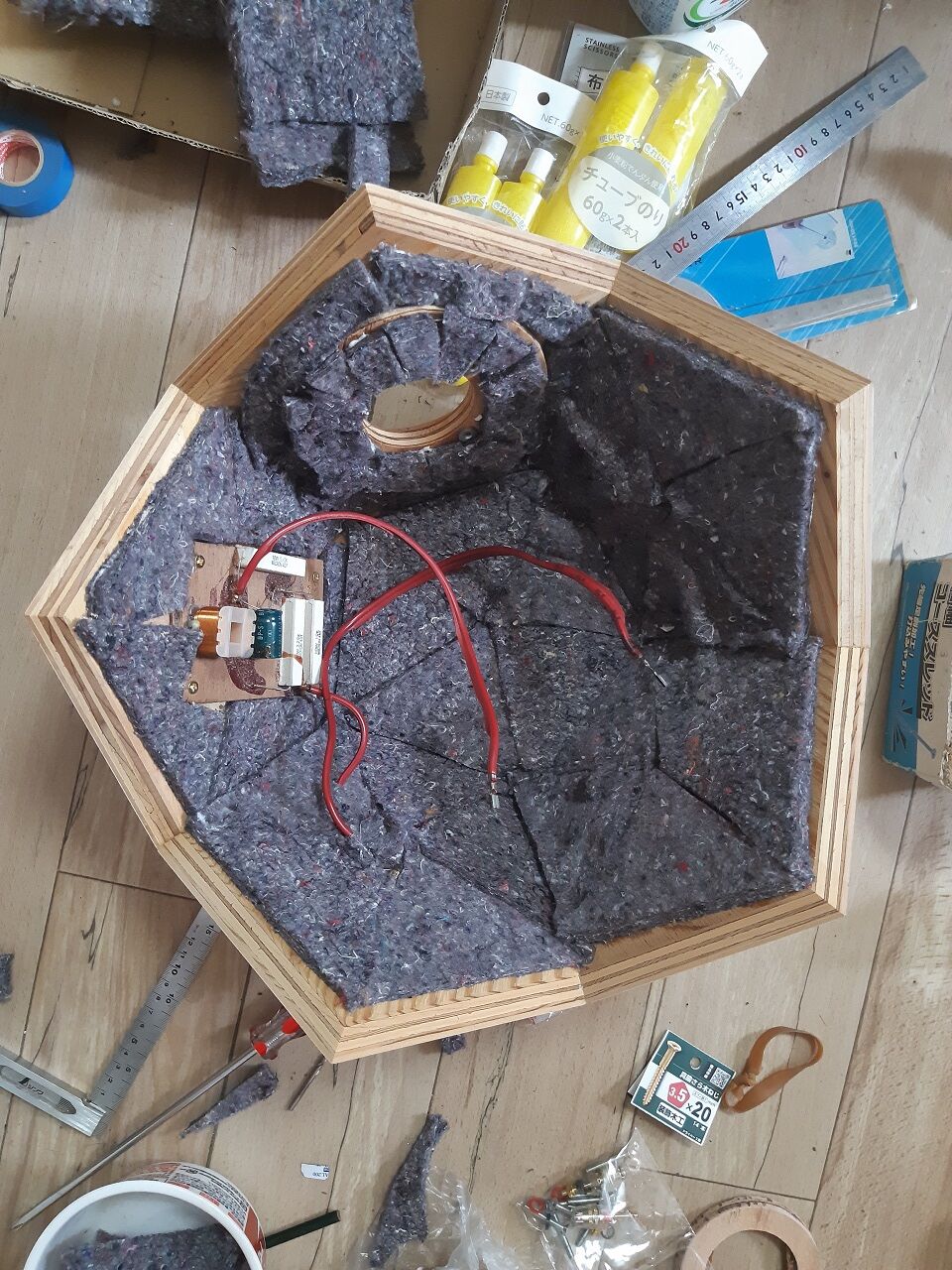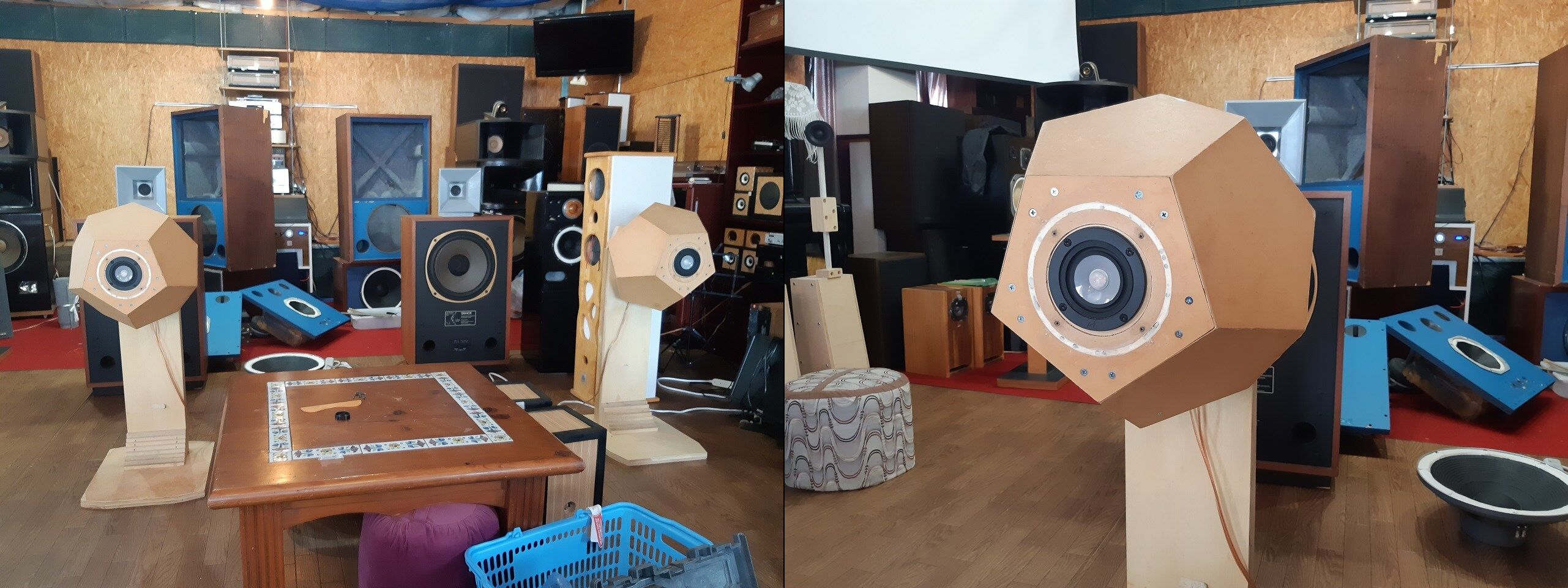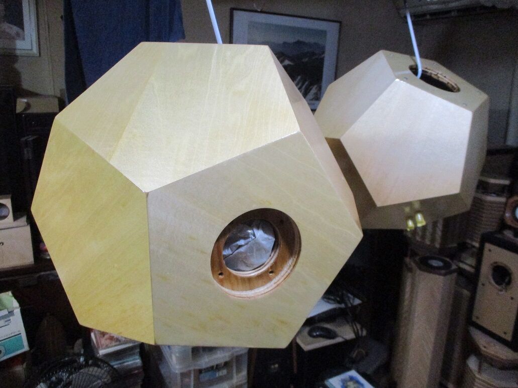 予期した事とはいえ、ツインになると明らかにクリアさが失われます。ここで、BOX一個に戻し試聴。今まで、正12面体BOXのクリアさは十分認識していますが、今回の様にバッフルをぎりぎりに小さくしたBOXのリアルさは、更に素晴らしいものがありました。