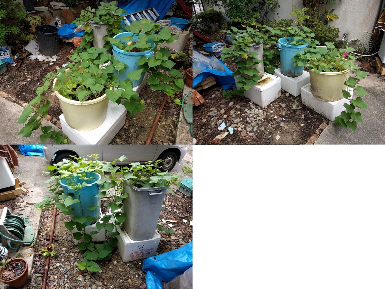 前回、5/25に芋づるを定植し4ヶ月が経過しました。 10本の内1本は枯れましたがその他はスクスクと育っています。