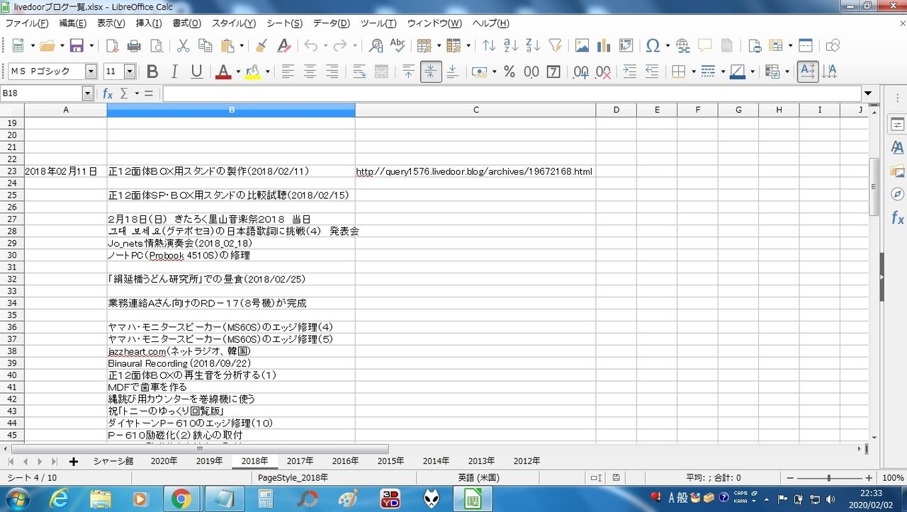 当初はエクセルで管理していましたが”短気者さん”から教えて貰った互換性のあるLibre Officeに変更しています。