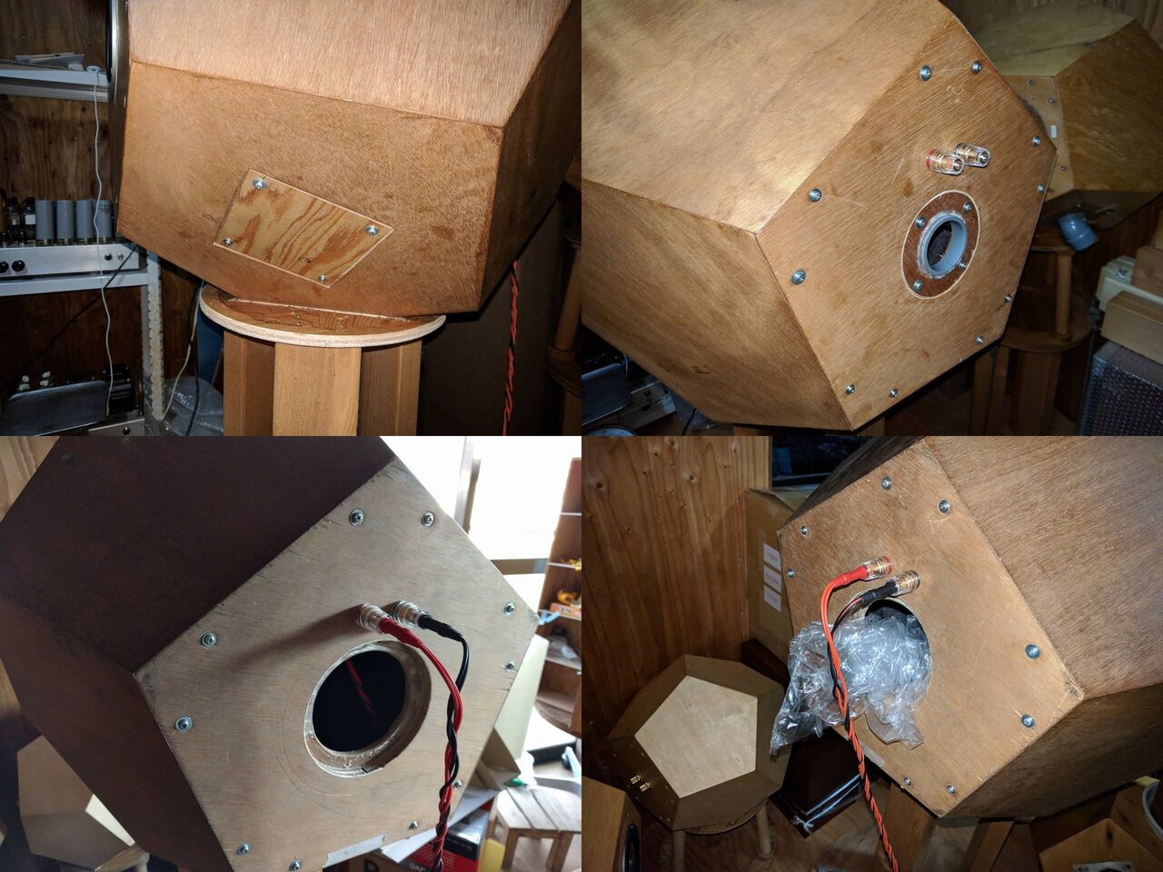 昨日夕方に左側の一台が完成したので効果の程を確認中です。左側がホーンBOXで右側がショートホーンの変則状態ですが少なくとも改悪には成っていないようです。先ずは、右側を完成させて詳細を評価したいと思います。