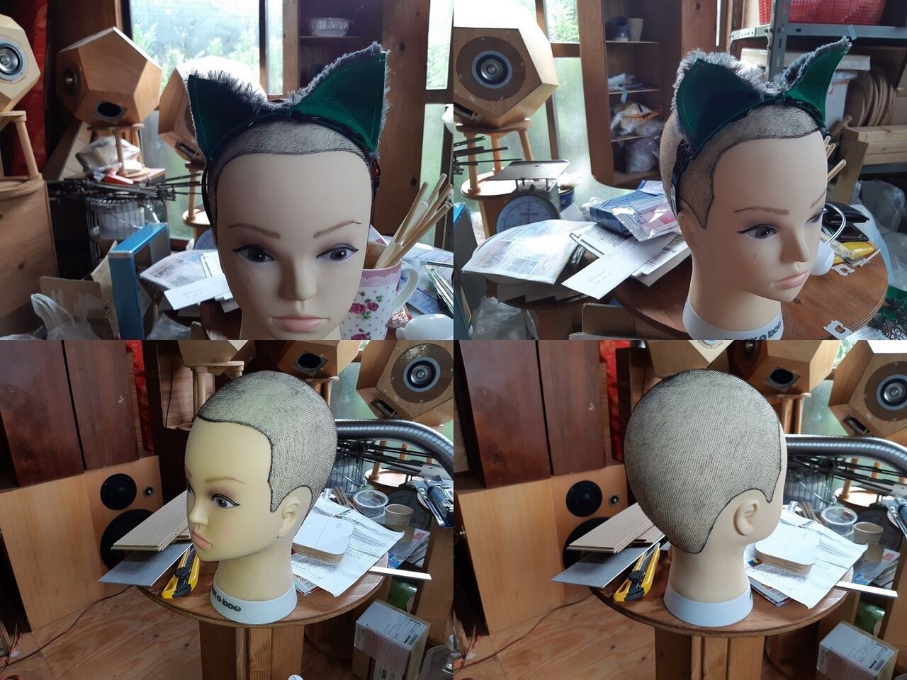 で面白いのは、DHマイクの定位は猫耳の方が優れていたと言う点です。早速、娘に猫耳カチューシャを作って貰いました。