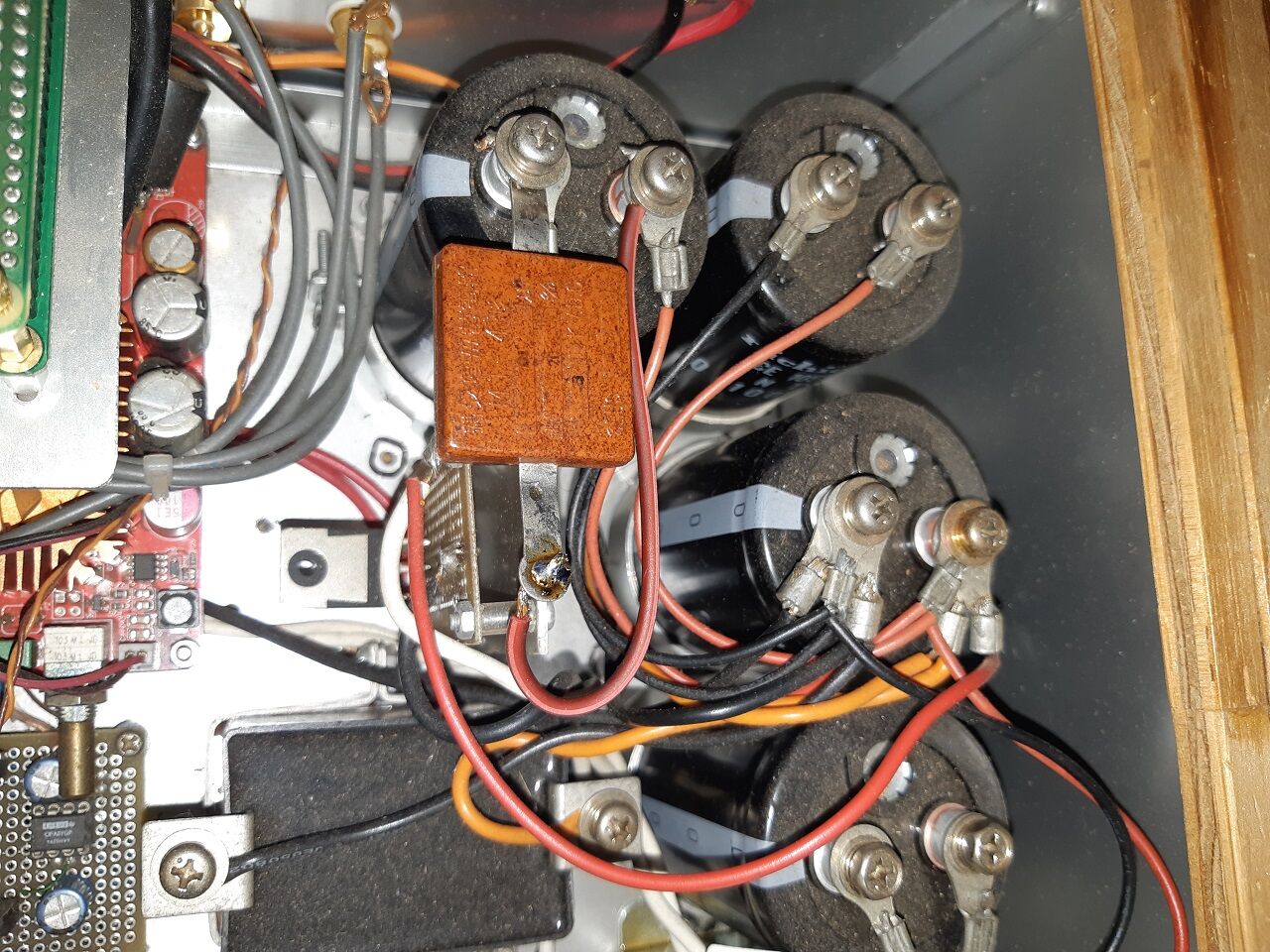 2025年01月06日 D級アンプの電源を一寸弄る(11) 今日は、落札したマイカコンデンサーが届いたのでD級アンプの電源にパラに入れてみました。前回弄ったのが2021/02でした。 矢張り音のイメージが変わりました。丁度、以前NWにマイカをパラに入れた時と同じ様です。端的に言えば、女性ボーカルがよりアコースティックなボーカルに変った様な変化です。全体的に音が滑らかになりました。