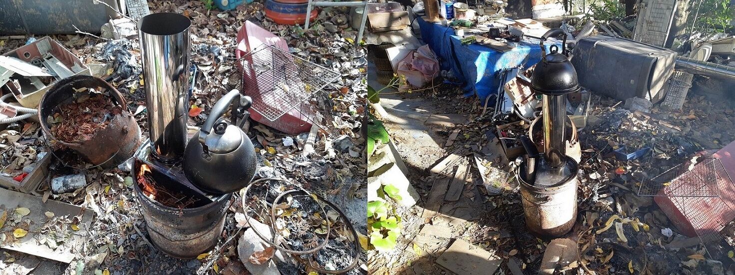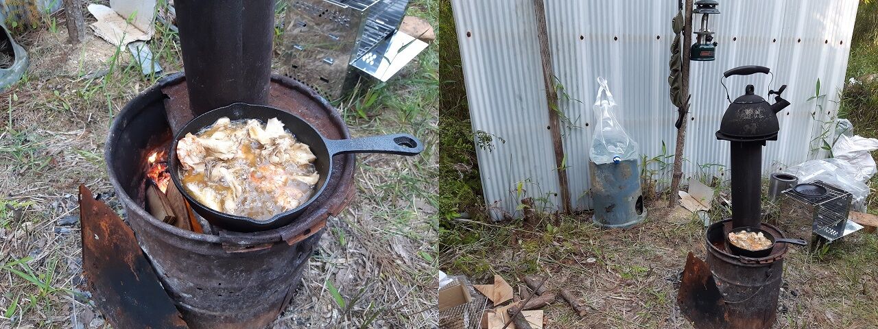 まくって何とかクリア。早速、ロケット・ストーブに点火。さらにNさん自作