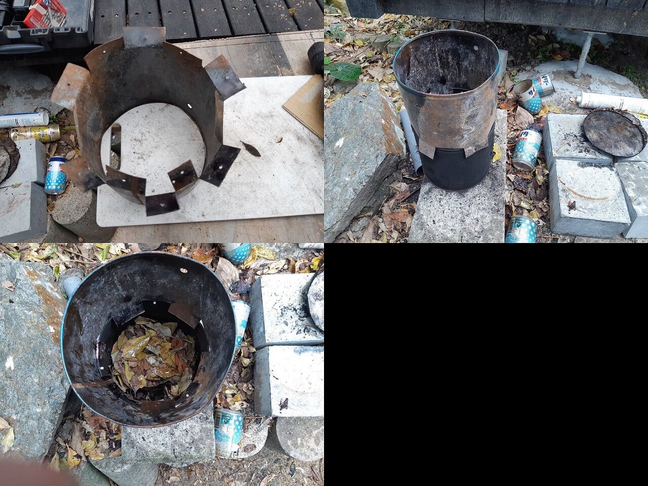 ・ロケットストーブに点火し、約30分程度燃やす。これで作業は終了。