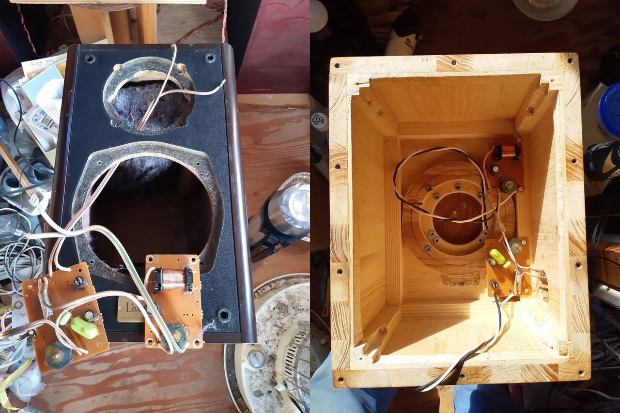 NWは半楕円中空体が干渉しないリア・バッフルに近い位置で低域用NWと高域用NWは十分離して取り付けました。