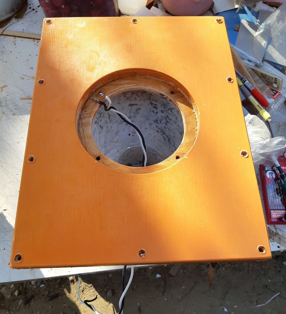 これで20㎝ユニット用の開口は完了です。明日は、16㎝ユニット用のバッフルを作り20㎝の音出しまで進める予定です。 つづく