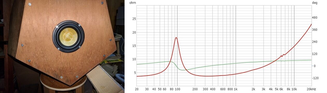 今日のところは、ウーファー(補強済み)のインピーダンスを測定しました。