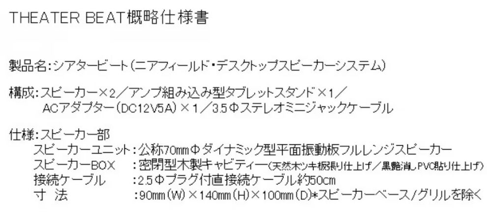 シアタービートの外観並びに仕様をシアタービートHPより拝借しました。