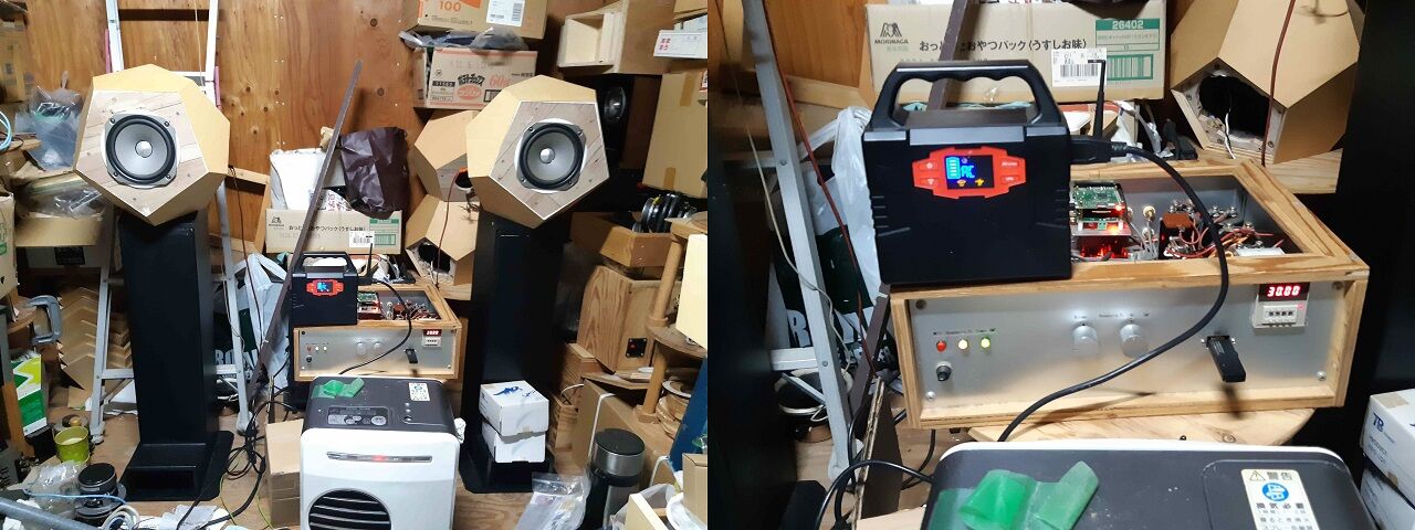 今回のテストは、オールインワン・アンプ(ラズパイ+D級アンプ、消費電力:約20W)によるテストなの普遍性は有りませんが、このポータブル電源を聞いてから商用電源の音がつまらなくなりました。